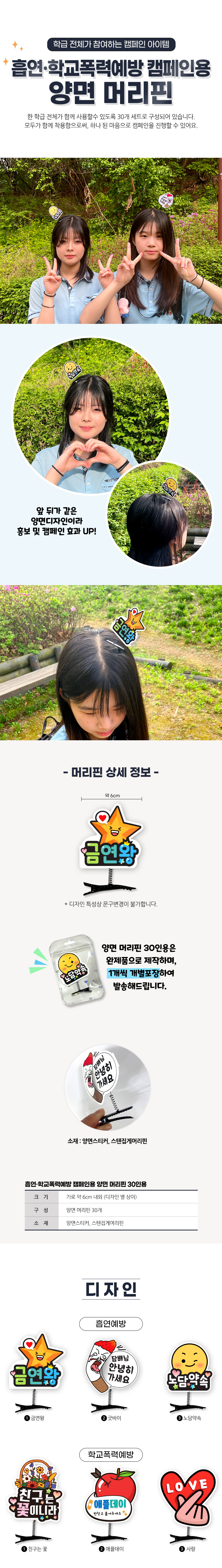 흡연예방 캠페인용 양면 머리핀 30인용_1.금연왕